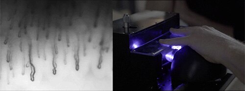 Figure 2: By combining a blue light source with a wide field microscope and video camera (right), an experimental system from MIT provides automated, fingertip-based counting of white blood cells. (Image source: MIT)