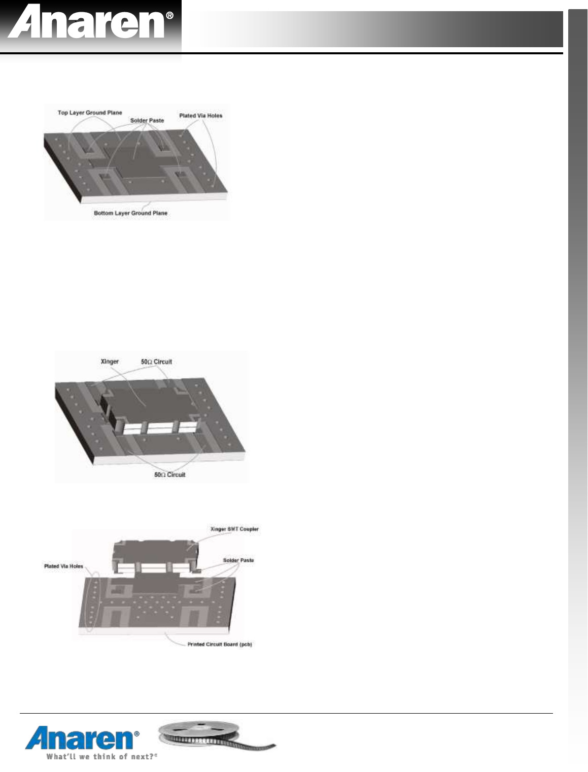 that is present on the Anaren RO4350 test board. When thinner circuit board material is used, the ground plane will