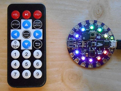 Using its IR sensor, the Circuit Playground Express can decode those messages sent by the remote. For more details on how this works, check out this great IR sensor guide.