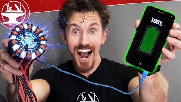 The battery formation sits in a housing that was plasma cut from steel, then surrounded by an acrylic plate. The arc reactor formation is to keep the batteries from touching each other and shorting, but the enclosure was made to keep the user “relatively safe” in case there is a short.