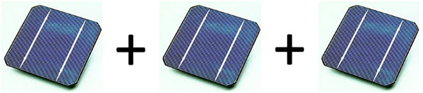 A single silicon solar cell typically generates a maximum of about 0.6V, and only a ‎small amount of current, which is not sufficient to power many devices. So solar ‎cells are connected together (Figure 4) to create move useful voltages (such as 5V ‎for a USB power pack).‎