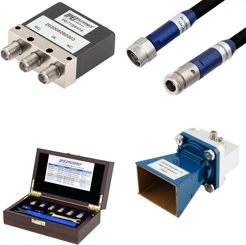 Key components include test cable assemblies such as PE3TC0600-48 and PE3TC1200-24, offering phase stability and durability under flex conditions. Calibration-grade adapters (PE3VNA1804-24 and PE3VNA1804-48), terminations (PE5CK1000 and PE5CK1001), and test antennas (PEWAN1172) complete a flexible ecosystem of products tailored to modern test and validation needs.
