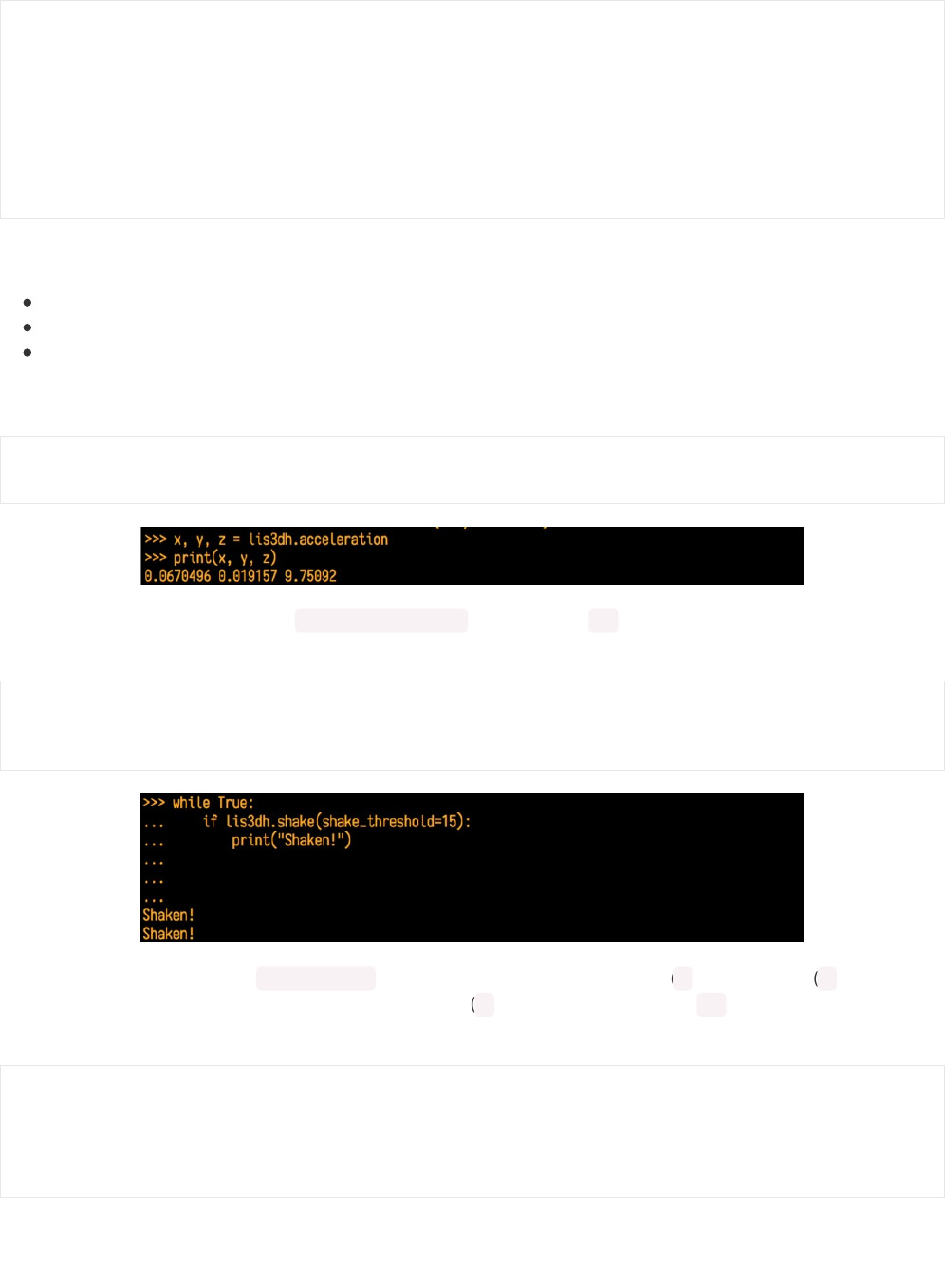 the shake response. Try the following code. Enter it into the REPL and then shake the board.